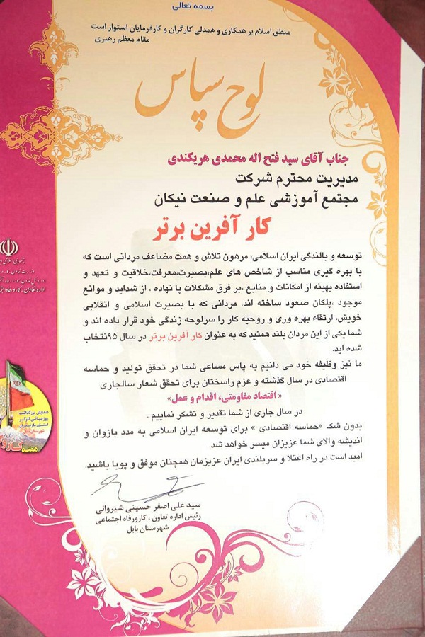 کار آفرین برتر سال 1395